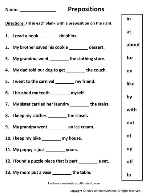 Preposition Work Sheets. Free interactive exercises to practice online or download as pdf to print. The dog in that yard belongs to bill.