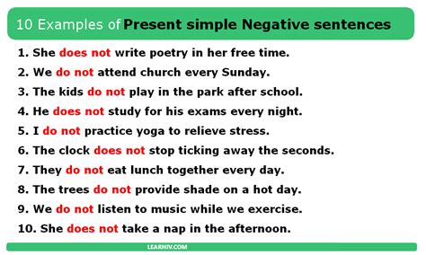 Web 4 Rows Simple Present Negative Examples: