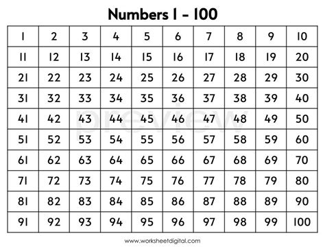 Web Copy And Paste Or Download A List Of Numbers 1 To 100 In Many Popular Formats Such As Pdf Excel, Csv, Json, Or Plain Text.
