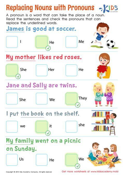 Replacing Nouns with Pronouns Worksheet Free Printable PDF for Kids from www.kidsacademy.mobi