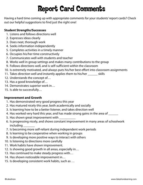 50 quick report card comments for assessing elementary student work h… from www.slideshare.net