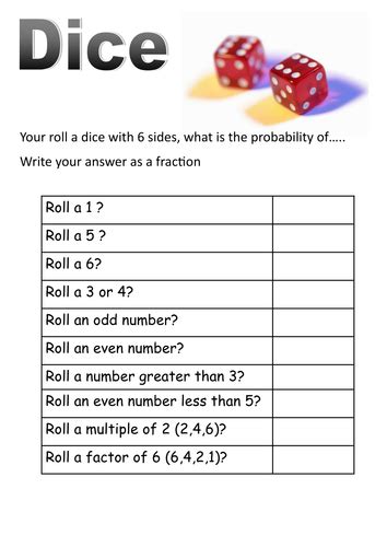 So when they're talking about rolling doubles, they're just saying, if i roll the two dice, i get. Topics/terms covered in this activity include: Dice probability worksheets whether you’re wondering what your chances of success are in a game or are just preparing for an assignment or exam.