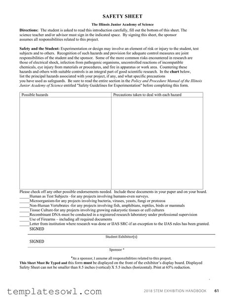 Science Fair Safety Sheet. This form includes a checklist of. 17 pics about safety sheet (1) :